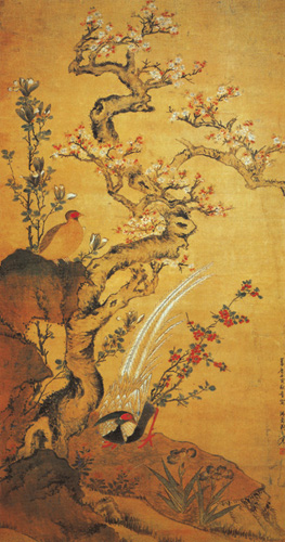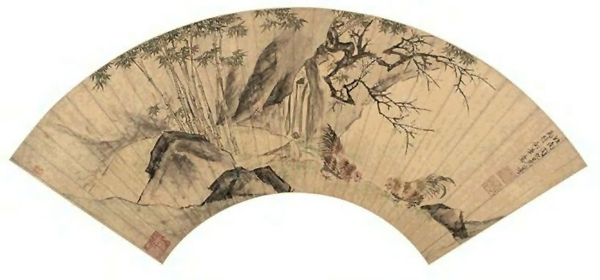明.周之冕《杏花锦鸡图》
