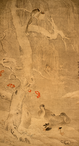 明.周之冕《松梅芝兔图》
