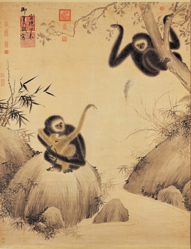 明.朱瞻基 戏猿图轴