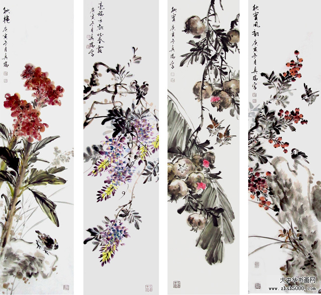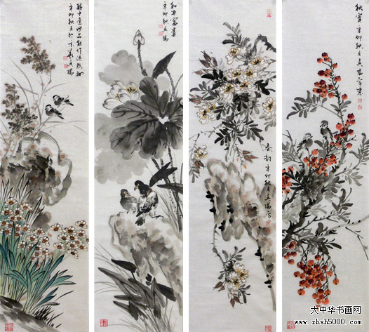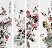 马兴瑞花鸟四屏