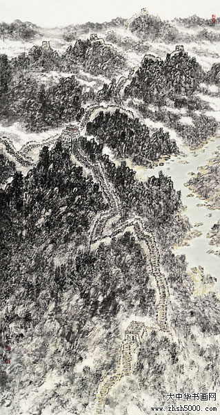 1993年为中国长城博物馆创作(高2米,长138米)中国画长卷《万里长城图》。