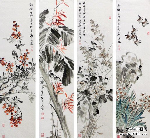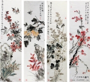 马兴瑞花鸟四屏