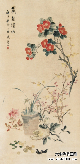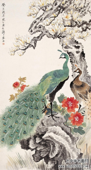 江寒汀(1904-1963),江苏常熟虞山镇人。又名江鸿,庚元、石溪、上渔、寒艇。十六岁从同里陶松溪习花鸟画,曾任教于上海美术专科学校。二十八岁开始卖画为生。中华人民共和国成立后为上海中国画院画师。为中国美术家协会会员,美协上海分会理事 。 曾任上海市第二、三届政协委员 。 纵观宋、元名迹,悟其谨严、放纵之情,对双钩填彩,没骨写生,均所擅长,尤擅描绘各种禽鸟,家中养许多鸟兽,以供写生之用。风格走清代华岩一路,笔墨老到,色彩明丽,形象生动,构图稳健,对虚谷、任颐的画风深有研究,偶尔仿制,几可乱真,有“江虚谷”之称。 传世作品有《杜鹊鹦鹉》、《白鹰》,20余丈的长卷《百鸟图》,1960年应周恩来总理邀请为人民大会堂绘制的巨幅《红梅图》等,亦有1983年上海人民美术出版社出版的《江寒汀百鸟图》,1992年古吴轩出版社出版的《当代名画家江寒汀》、北京荣宝斋出版的《花鸟画名家江寒洒画册》,1995年上海人民美术出版社出版的《江寒汀百卉册》等。 |